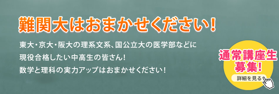 東大・京大・阪大の理系文系、国公立大の医学部など難関の現役合格を目指す方、理数実力アップならおまかせください!